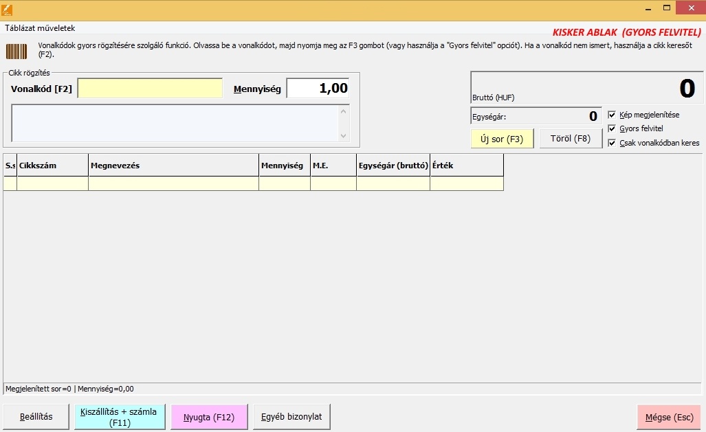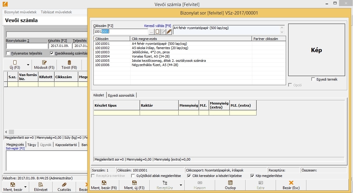 - kézi számlatömbben kiállított számlák nyilvántartása