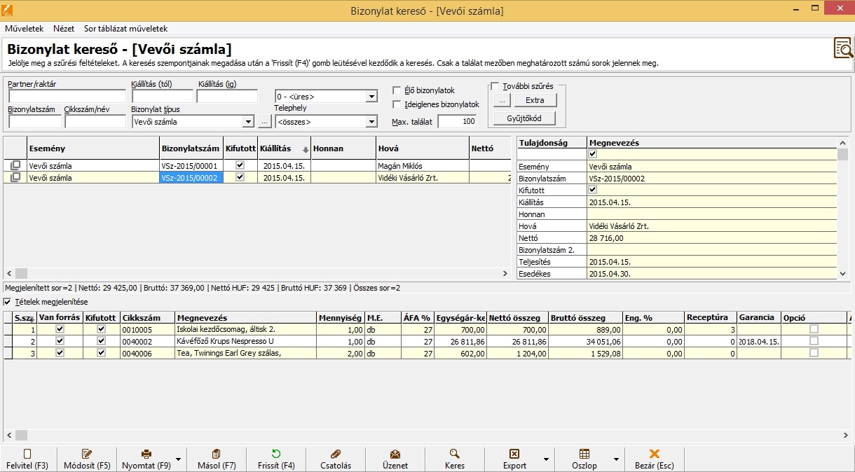 - belföldi (HUF) számla készítés, akár két külön számlatömbbe