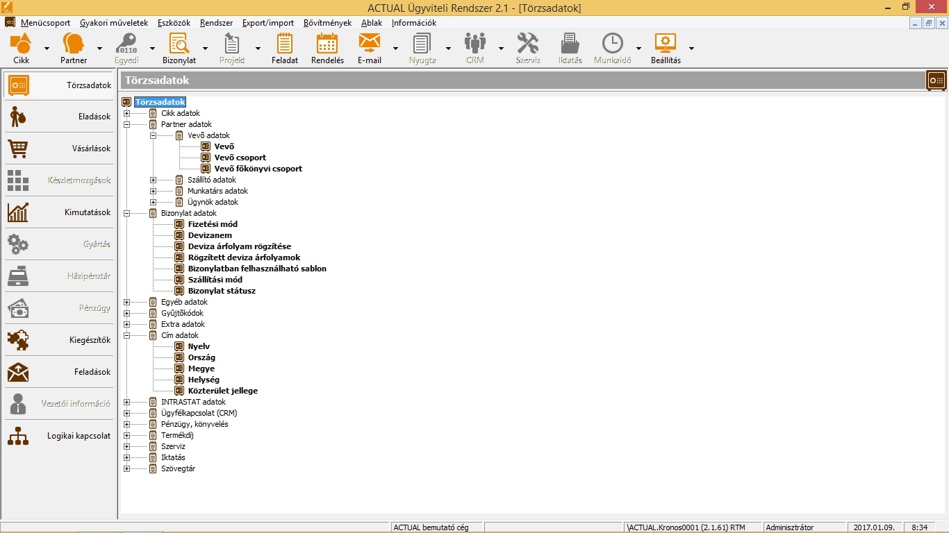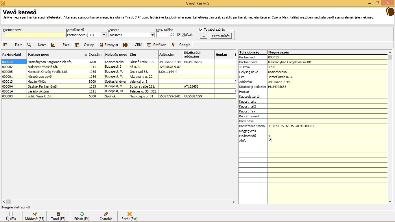 - korlátlan számú, különböző típusú cím nyilvántartása (székhely, számlázási, levelezési és telephely címek)
