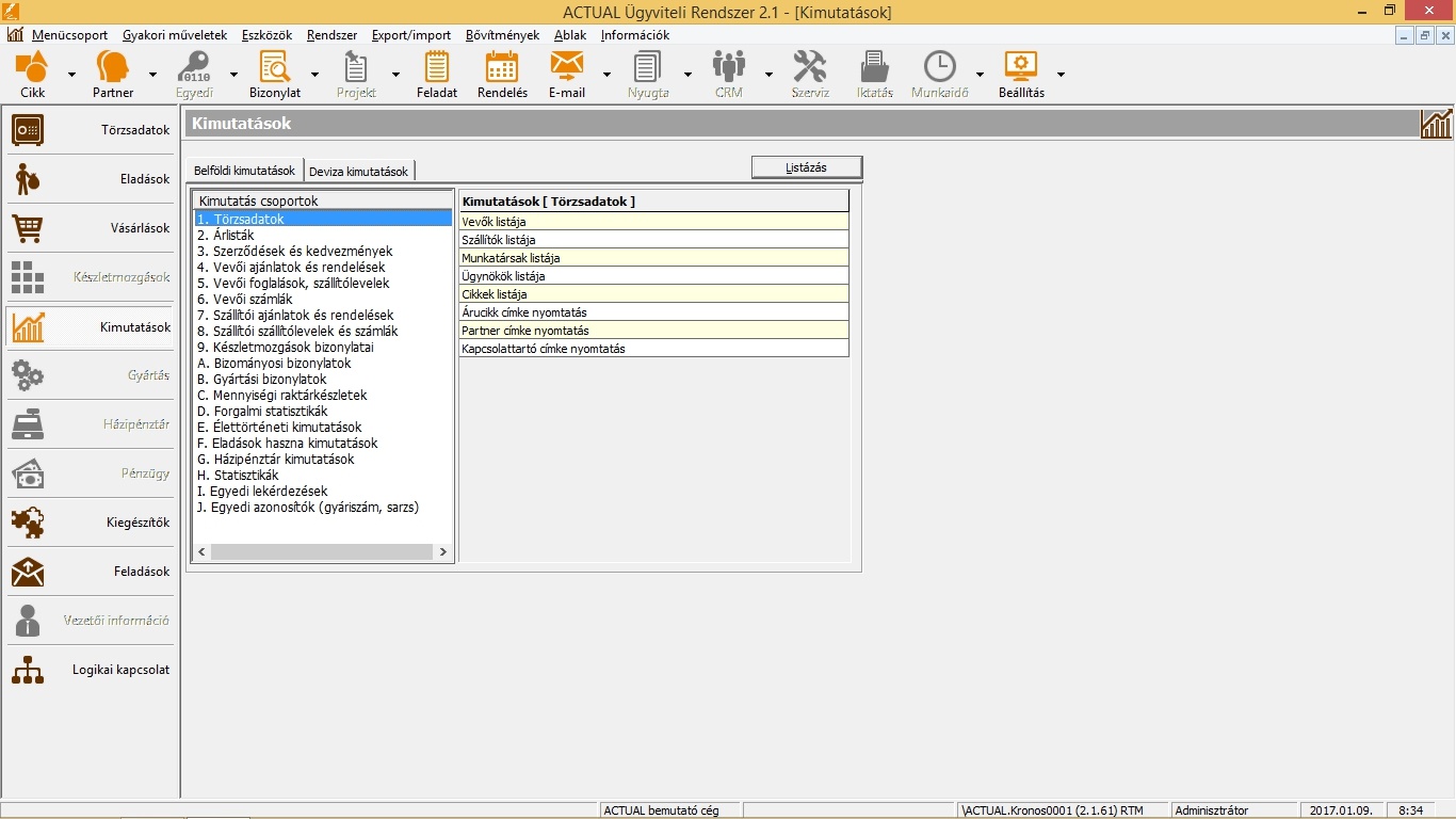- több száz, különböző szempont szerint lekérhető kimutatás és lista